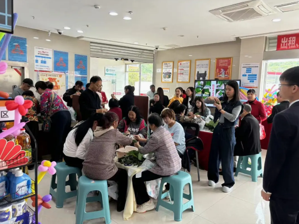 乌当水东路支行在营业大厅开展端午节包粽子活动,30余名客户齐聚网点,大家有序将粽叶、糯米包成一个个精致的粽子,现场热闹非凡,充满着欢声笑语。活动开展的同时,工作人员还开展金融消费者知识普及、老年人使用手机银行、存款保险等宣讲活动,并宣传我行定期、理财产品,得到客户的广泛认可。
