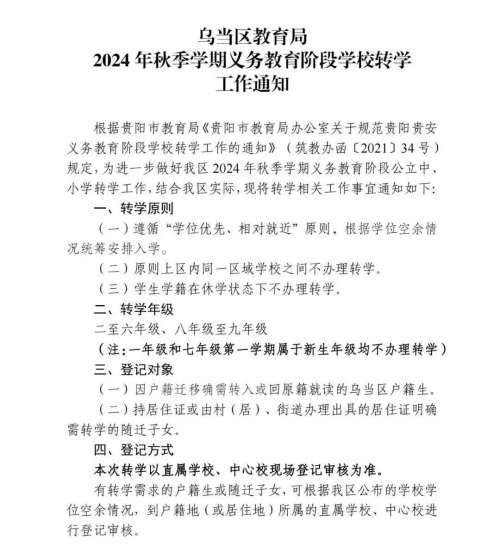 7月15日-17日登记!乌当区发布义务教育阶段学校转学工作通知