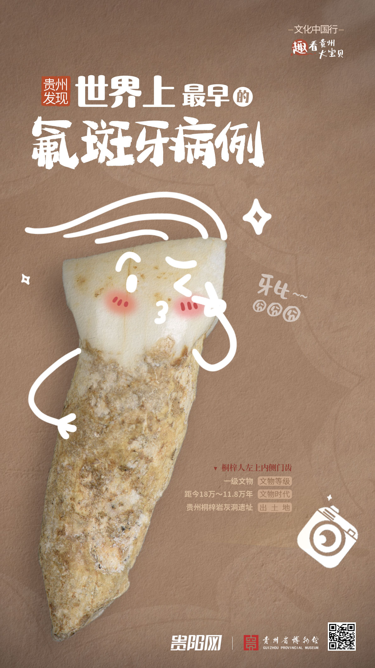 从充满着奇幻色彩的侏罗纪时期到近现代贵州的蓬勃发展,上亿年间,贵州这片大地上不仅留下了“贵州龙”的神秘足迹,孕育了星河璀璨的史前文明,还产生了夜郎文化、土司文化、屯堡文化等独具特色的文化形态。即日起,贵阳网、贵州省博物馆联合推出《文化中国行丨“趣”看贵州大宝贝》栏目,以时间为媒,以文物为载体,带你邂逅“神奇贵州”。