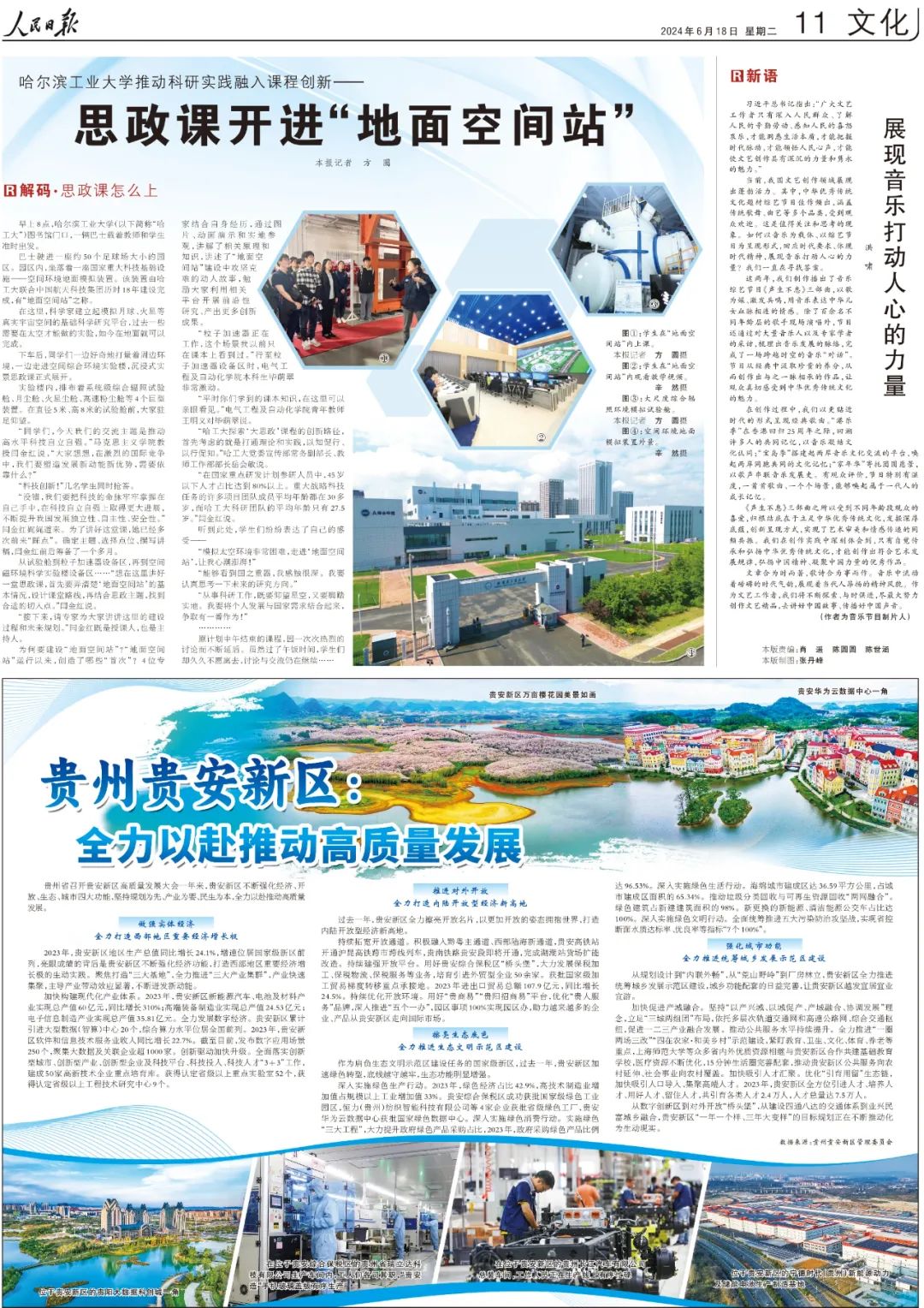 6月18日,《人民日报》刊发《贵州贵安新区:全力以赴推动高质量发展》,报道贵州省召开贵安新区高质量发展大会一年来,贵安新区不断强化经济、开放、生态、城市四大功能,坚持规划为先、产业为要、民生为本,全力以赴推动高质量发展。具体报道如下: